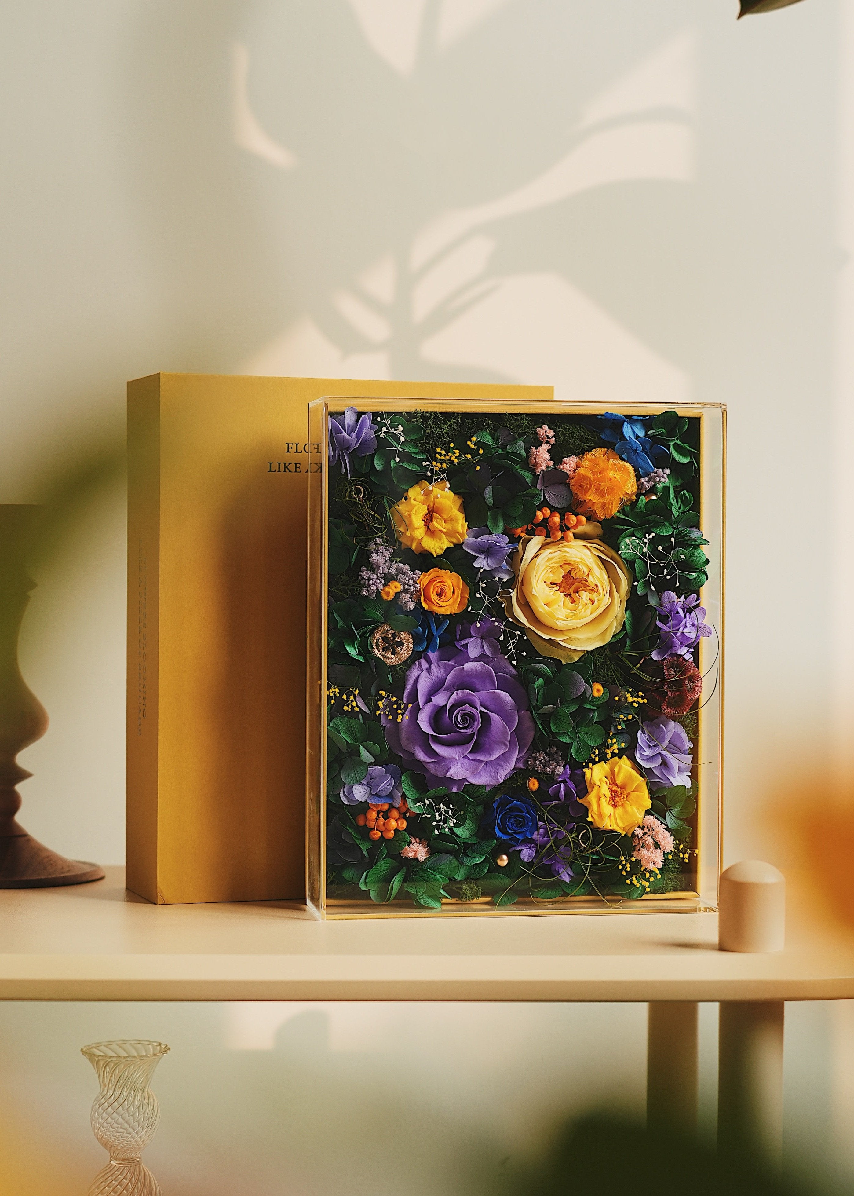 ALL preserved flower are handmade from 100% fresh flowers through complicated processes and it can be kept at least 3 years but avoid direct sunlight and keep it in a suitable environment.